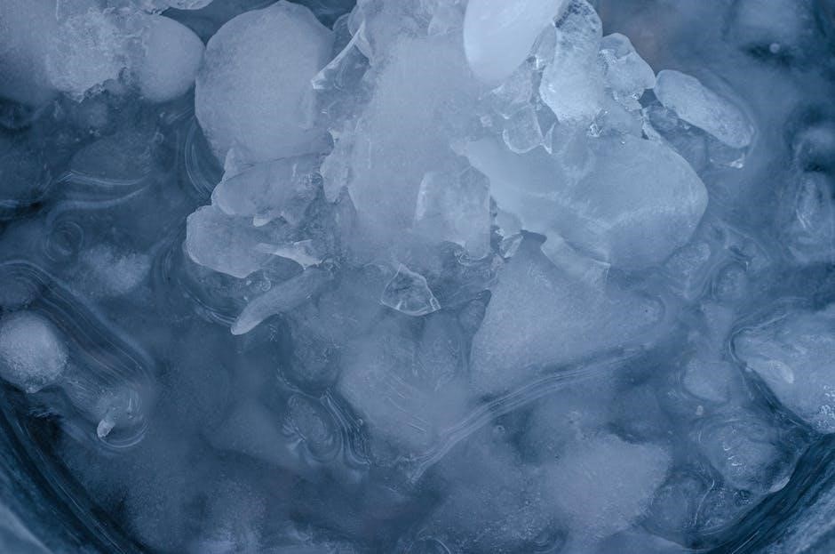Troubleshooting guides address common issues like low ice yield, ice clumping, or unusual noises, often linked to water filtration or the ice harvesting mechanism; Regular cleaning and descaling procedures are emphasized to prevent mineral buildup and maintain ice clarity. The manuals stress the use of genuine U-Line replacement parts to uphold performance and warranty coverage, offering detailed parts diagrams.